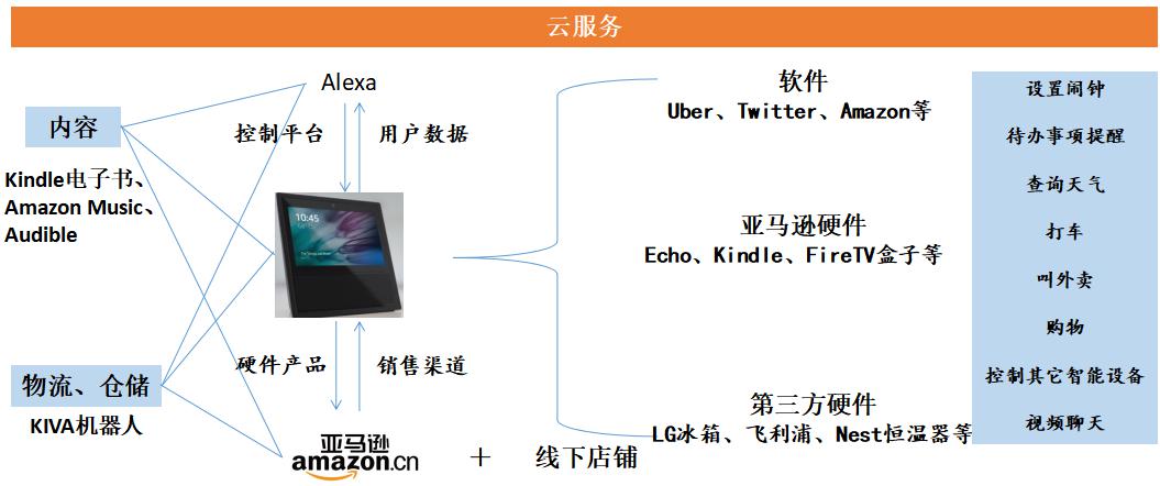 2.亞馬遜具有深厚的電商基礎(chǔ),并在內(nèi)容、硬件、平臺、云計算、物流倉儲等領(lǐng)域布局,通過智能音箱整合軟件+硬件+平臺+內(nèi)容資源,進一步盤活電商資源。