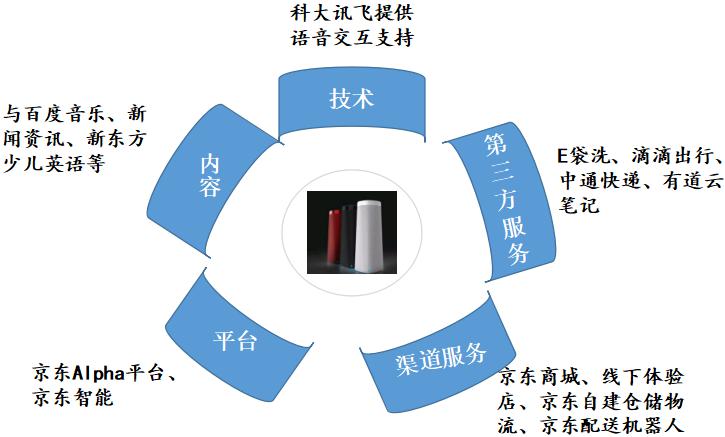 2.通過強強聯(lián)合的方式,京東通過電商平臺優(yōu)勢,整合行業(yè)中的技術(shù)廠商、內(nèi)容廠商及第三方服務(wù)廠商,并發(fā)起“京東智能音頻聯(lián)盟”,向聯(lián)盟內(nèi)成員輸出“JD+智能音頻解決方案”,實現(xiàn)叮咚音箱產(chǎn)品與優(yōu)質(zhì)內(nèi)容、服務(wù)的結(jié)合。