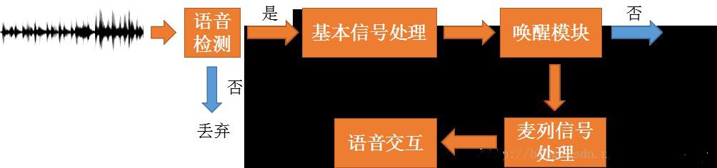 總體而言,音箱工作時,麥列始終處于拾音狀態(tài)(持續(xù)對聲音信號進行采樣、量化)。經(jīng)過基本的信號處理(靜音檢測、降噪等),喚醒模塊會判斷是否出現(xiàn)喚醒詞。如果出現(xiàn)喚醒詞,后續(xù)語音會進行更復(fù)雜的語音信號處理,(理想情況下)得到干凈的語音信號,開始真正的語音交互流程。