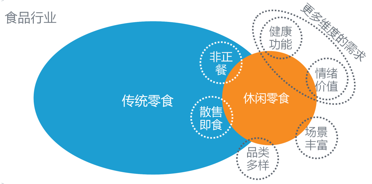 目前行業(yè)專家和資深從業(yè)者,往往認(rèn)為“休閑零食”和“休閑食品”,甚至是“零食”這樣的產(chǎn)品概念雖然互有區(qū)別,但某種意義上又是互相交融的,畢竟不同的概念也處在不停的變動(dòng)中,舊的概念在升級(jí),新的概念在擴(kuò)展: