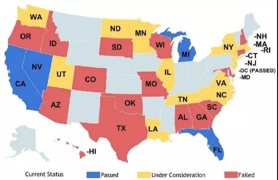 隨著無人駕駛技術的不斷發(fā)展演進,對無人駕駛的立法變得十分重要。截至2015年,美國已經有16個州啟動無人駕駛立法;截至2014 年是12個州,截至2013年是9個州,截至2012年是6個州。Nevada 在2011年授權無人駕駛車的運營,是全美第一個授權無人駕駛的州。之后,California,F(xiàn)lorida,Michigan,North Dakota,Tennessee和 Washington D.C 針對無人駕駛通過了相關的法案。Arizona州長簽署了無人駕駛的行政命令。