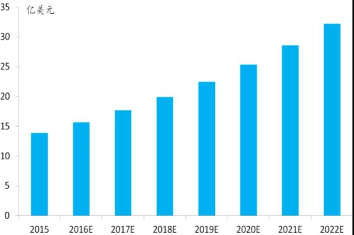 根據(jù)PWC機構預測,2016 年,智能車和車聯(lián)網市場預計規(guī)模為403 億歐元(約 3000 億人民幣),2021年,預計市場規(guī)模為1226億(約 9000億人民幣),智能車和車聯(lián)網市場預計以平均每年 25%的速度增長,其中,安全部分占據(jù)最大比重,從2016年的155億歐元增長到493億歐元。按照 PWC 的預計,智能汽車和車聯(lián)網全球市場空間未來有望達到萬億人民幣規(guī)模。