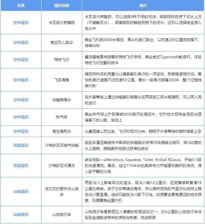 皇后鎮(zhèn)的體育和旅游產(chǎn)業(yè)為經(jīng)濟發(fā)展提供了強大動力,雙輪驅(qū)動的特色小鎮(zhèn)在全世界尚屬少見。戶外運動作為皇后鎮(zhèn)旅游發(fā)展系統(tǒng)中的重要元素,是形成體育旅游共生體的基本條件。上述運動具有探險性、挑戰(zhàn)性和刺激性特征,皇后鎮(zhèn)則利用以高山峽谷、急速湍流、冬季白雪皚皚等優(yōu)越地勢,開發(fā)激流泛舟、跳傘、滑雪、蹦極、噴射快艇、漂流、山地自行車等戶外運動,為各地戶外運動發(fā)燒友提供了良好的體驗場地。