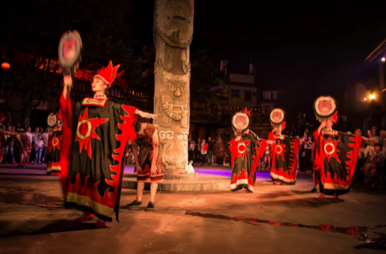 “彝鄉(xiāng)戀歌”是偉光匯通打造的一項以“天天長街宴、夜夜火把節(jié)”為主題的彝族原生態(tài)歌舞伴餐類旅游產(chǎn)品。通過連通的環(huán)形水上吊腳樓這一特殊用餐環(huán)境,“彝家八大碗”這一特色餐品,營造和再現(xiàn)了彝族人民擺設(shè)長街宴同族共聚、誠摯待客的餐飲文化。而在品嘗彝家美食之余,中央水榭舞臺的表演更是精彩紛呈——跳菜、敬酒歌、服飾展、猜新娘互動等等,讓游客在享受美食的同時,感受原汁原味的彝族風情。