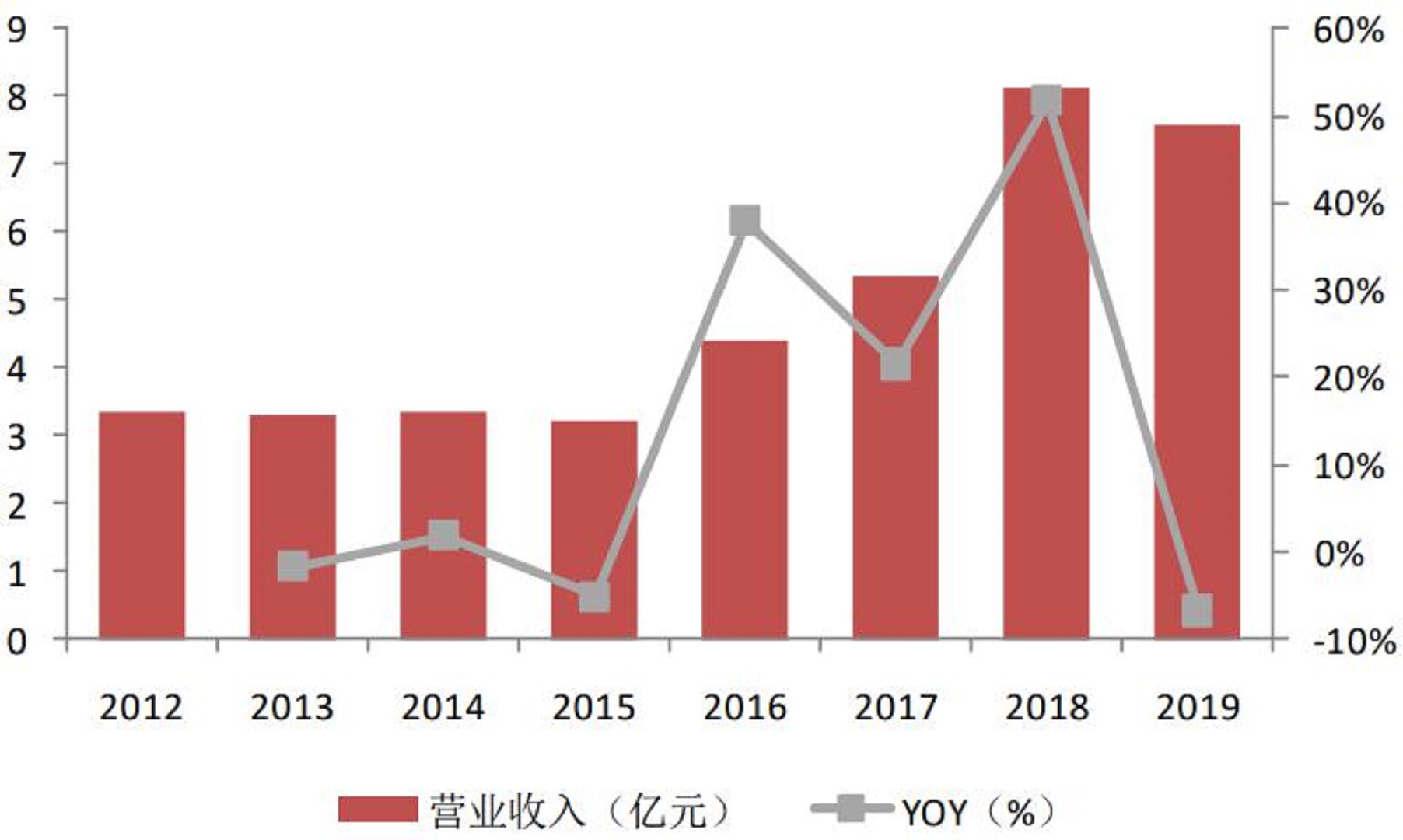 2018年,公司實現(xiàn)營業(yè)收入14.46億元,同比增長76.23%,實現(xiàn)歸母凈利潤2.84億元,同比增長239.37%。其中電子化學品占公司總營收的64.9%,是公司最主要的收入來源。