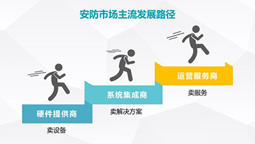 對(duì)比國(guó)外市場(chǎng),我國(guó)安防運(yùn)營(yíng)服務(wù)規(guī)模占比顯著偏低,將成為廠商未來布局的重點(diǎn)。因此要加快運(yùn)營(yíng)服務(wù)市場(chǎng)發(fā)展步伐。安防運(yùn)營(yíng)服務(wù)是安防產(chǎn)業(yè)的重中之重,是全球安防產(chǎn)業(yè)未來發(fā)展的趨勢(shì)。在技術(shù)升級(jí)、產(chǎn)品同質(zhì)化和成本的降低的背景下,產(chǎn)品市場(chǎng)的利潤(rùn)空間逐漸被壓縮,從硬件提供商(賣設(shè)備)——系統(tǒng)集成商(賣解決方案)——運(yùn)營(yíng)服務(wù)商(賣服務(wù))已成為主流發(fā)展路徑。