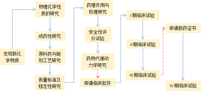 按照工作的性質(zhì),CRO主要分為臨床前研究(Pre-Clinical)CRO和臨床研究CRO。臨床前研究階段包含物理化學(xué)性質(zhì)的研究等,臨床研究階段包含I期臨床試驗(yàn)等,具體可參考新藥研發(fā)流程(如圖1)。