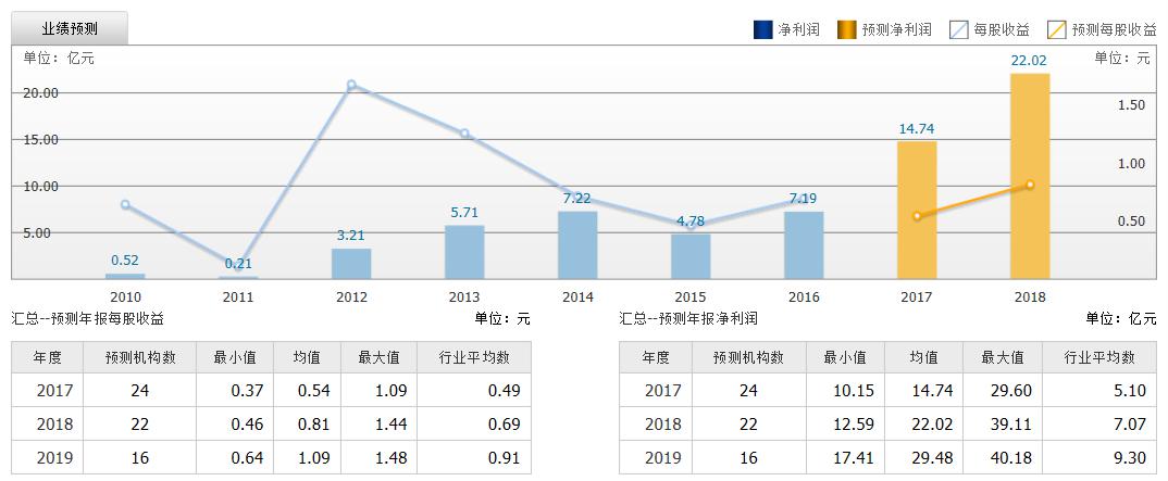 截至2017年8月3日,6個月以內共有 7 家機構對遠方光電的2017年度業(yè)績作出預測。預測2017年每股收益 0.66 元,較去年同比增長 83.33%;預測2017年凈利潤 1.93 億元,較去年同比增長 121.75% 。