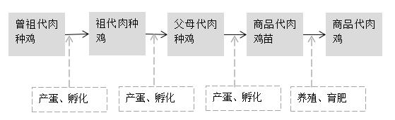 我國白羽肉雞祖代種雞養(yǎng)殖企業(yè)主要從國外引進(jìn)祖代肉種雞苗,繁育父母代肉種雞苗出售給父母代肉種雞養(yǎng)殖企業(yè),父母代肉種雞產(chǎn)蛋孵化出商品代雛雞銷售給代養(yǎng)戶,商品代肉雞經(jīng)屠宰加工后成為雞肉產(chǎn)品。白羽肉雞的目標(biāo)客戶主要是肯德基、麥當(dāng)勞等快餐消費(fèi)及分割產(chǎn)品出口。