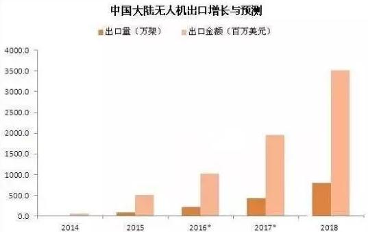 據(jù)國家海關數(shù)據(jù)統(tǒng)計,2015年中國大陸出口無人機89.1萬架,同比增長427.2%;出口金額5.15億美元(約合32.7億人民幣),同比增長730.6%。主要出口地區(qū)依次是香港、北美和歐盟,平均出口價折合人民幣約3670元。其中,出口香港的40%又轉銷到北美和歐盟。2015年中國大陸進口無人機14.5萬架,同比增長1350%;進口金額1.1億美元,同比增長83.3%。平均進口價折合人民幣約4817元。目前中國大約有400個無人機制造商,是全球70%的無人機需求市場的供貨商。