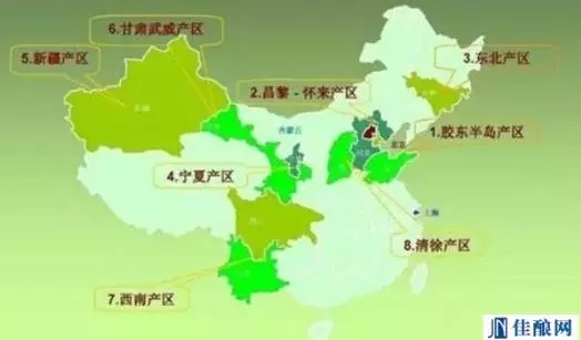 中國的9大葡萄酒地區(qū),分別為東北、河北昌黎、膠東半島、河北懷涿盆地、山西清徐、新疆、甘肅武威、寧夏賀蘭山東部以及西南地區(qū),九個產(chǎn)區(qū)的葡萄表現(xiàn)也獨(dú)具風(fēng)格。