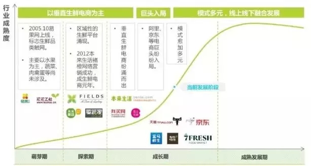1、中國生鮮電商行業(yè)歷經(jīng)探索、高速發(fā)展、洗牌之后,進入了成長期轉型升級階段。
