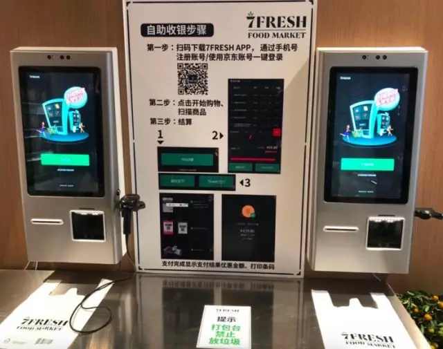 選購完畢,消費者可在7fresh店內(nèi)實現(xiàn)自助結賬。具體操作如上圖所示,掃碼下載7fresh APP,通過手機號注冊賬號,點擊開始購物,掃描商品,進行結算。但對于此全用戶手動操作的過程,如果顧客有意遺漏幾件商品的掃描與付費呢?對于此問題,京東方面回應稱“7fresh 是面向高素質(zhì)消費群體的生鮮超市”。