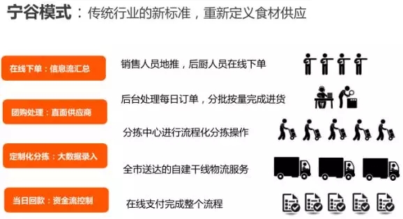 寧谷物配以“易訂貨”軟件為依托,欲打造區(qū)內(nèi)最大的城市商用食材供應鏈平臺;其商業(yè)模式是用平臺化團購方式+城市內(nèi)自建物流配送體系,實現(xiàn)對城市餐飲商戶所需食材的全方位供應。其生鮮B2B模式在銀川城區(qū)已初具規(guī)模,具有代表性,本報告將著重分析。