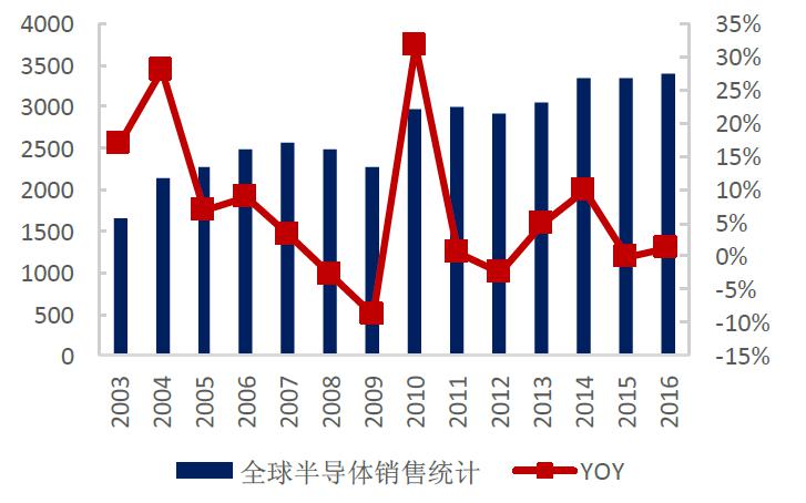 隨著全球經(jīng)濟的逐步復(fù)蘇,PC、手機、液晶電視等消費類電子產(chǎn)品需求不斷增加,同時在以物聯(lián)網(wǎng)、可穿戴設(shè)備、云計算、大數(shù)據(jù)、新能源、醫(yī)療電子和安防電子等為主的新興應(yīng)用領(lǐng)域強勁需求的帶動下,半導(dǎo)體銷售市場規(guī)模穩(wěn)定增長,預(yù)計2017年全球集成電路市場規(guī)模增長至3465億美元。