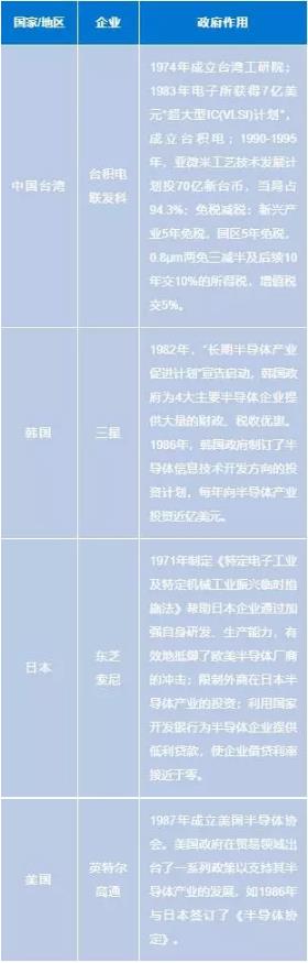 根據(jù)中國臺灣、韓國等國家/地區(qū)半導(dǎo)體產(chǎn)業(yè)發(fā)展的經(jīng)驗,政府的扶持具有不可替代的作用。臺灣地區(qū)1974年成立臺灣工研院,1987年成立臺積電,并在其上投入了8年后,才實現(xiàn)盈虧平衡,走上獨立的發(fā)展的道路;韓國政府通過為國內(nèi)半導(dǎo)體企業(yè)提供大量的財政、稅收優(yōu)惠來支持本國半導(dǎo)體產(chǎn)業(yè)的發(fā)展。因此,政府的持續(xù)投入是IC制造和發(fā)展的必要條件。