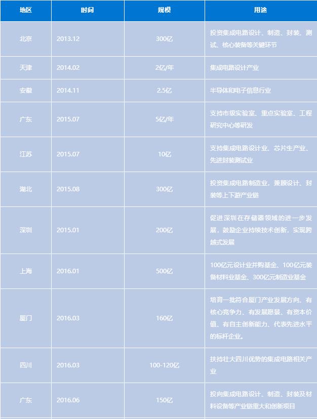 目前,北京、上海、深圳、南京、合肥、廈門、無錫、石家莊、昆山,以及福建、湖北、安徽、陜西、廣東、四川、遼寧等地,均成立了上百億規(guī)模的集成電路產(chǎn)業(yè)投資基金,大基金總規(guī)模達到1387.2億元,企業(yè)和地方產(chǎn)業(yè)基金規(guī)模累計超5000億元。